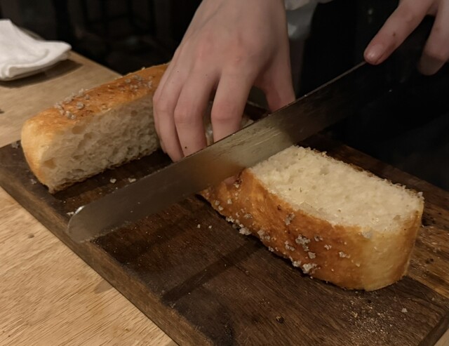 そうそうこちらのお店はパンも自家製のようで焼きたてを目の前で切ってくださいます。フォカッチャも美味しかったのですが、ドライフルーツが入ったカンパーニュも写真撮り忘れたのですが、かなり美味しくて感動。