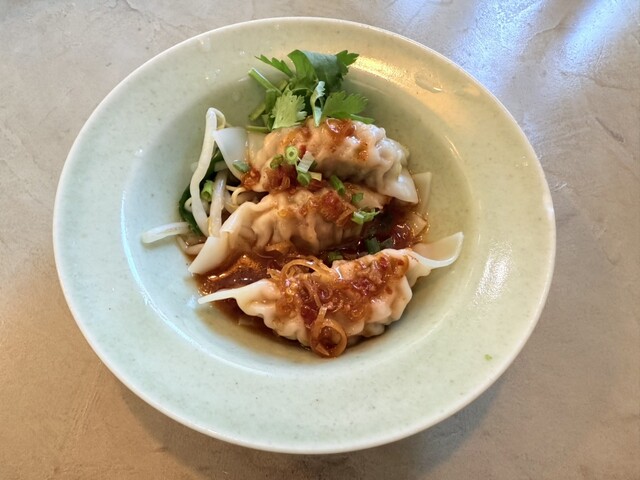 さて食事にはサイドの水餃子が付いています。タレが結構辛くて、でも癖になる美味しさ。
