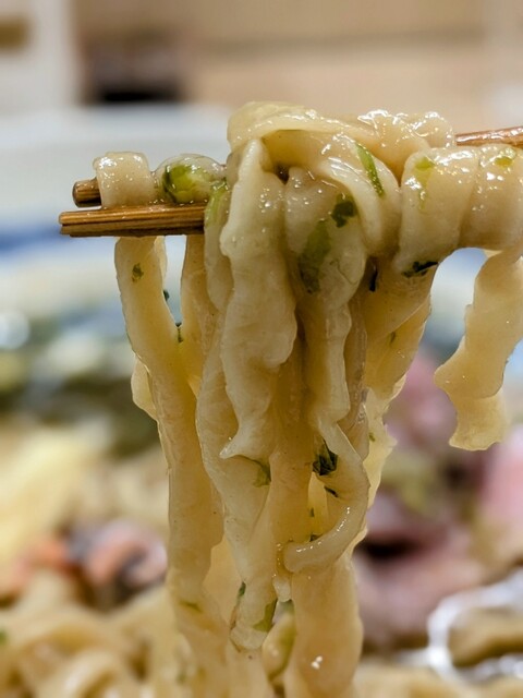 ピロピロの手打ちちぢれ麺。
