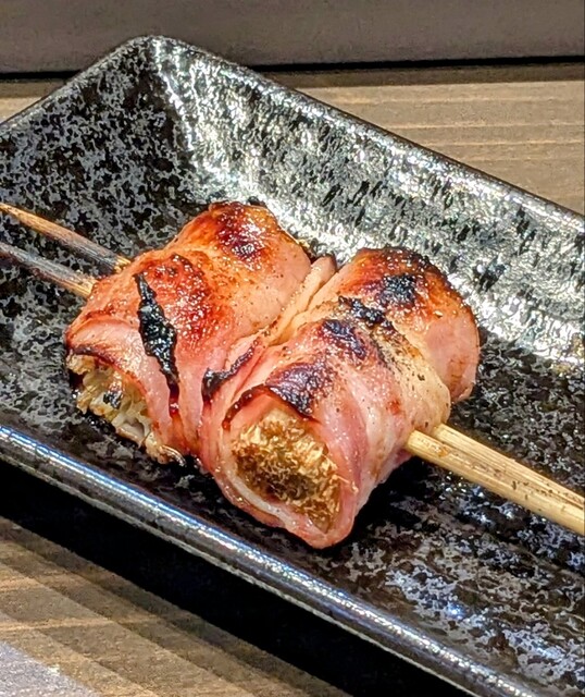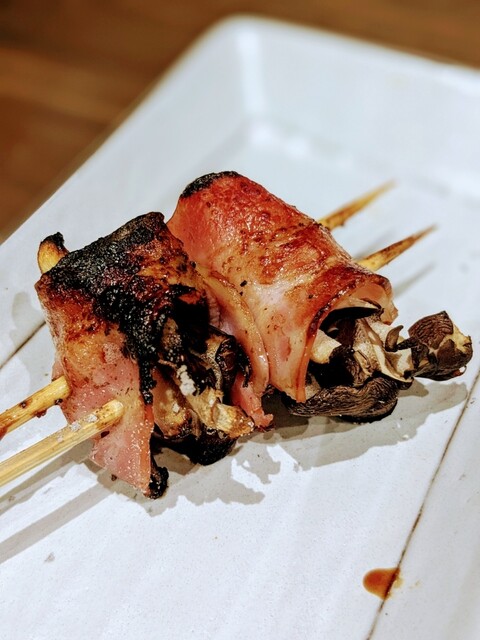 黒舞茸のベーコン串が舞茸の香りが鼻から抜けて、香ばし醤油風味と相まって、おかわりしちゃいました