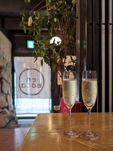 サラダは前菜みたいにお洒落に盛り付けされていて、ワインに絶対合うメニュー。私はお酒飲めないのでノンアルのスパークリングワインで乾杯しました。
