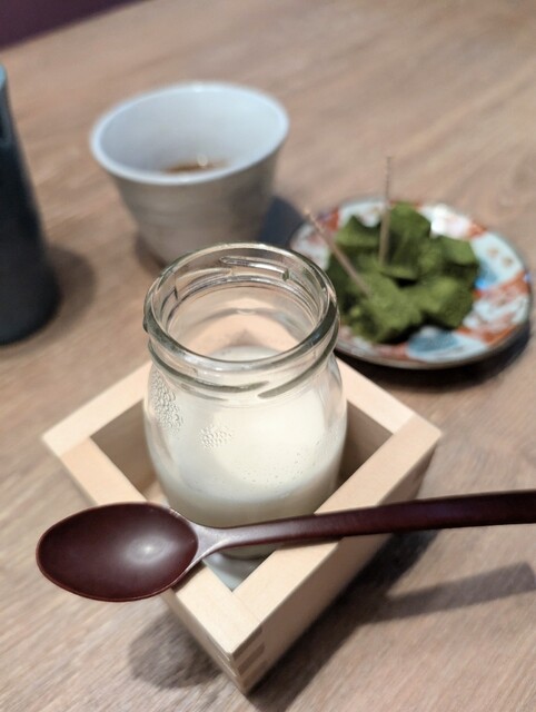 ふんわり酒かすのいい香り。あっさりしてシメにぴったりの和スイーツでした。温かいお茶と一緒にほっこり。
