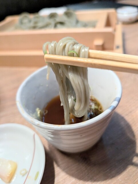 新潟の魚沼地域の名物。つなぎに布海苔を使用した蕎麦なのでコシがあってツルツル。京都で本格的なへぎそばが食べれるのは嬉しすぎました。