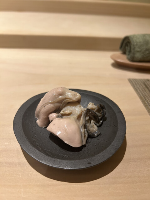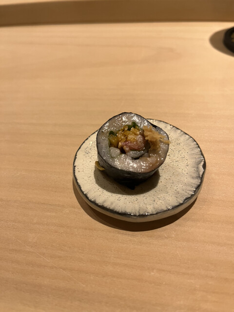 こちらのお店は最大8名が座れるカウンター席のみで、女将さんが温かく迎えてくれました。お料理は、お一人17600円(税込)のコースで、どれも質が素晴らしく、一口ずつ大切に味わいました。飲み物は、日本酒をさまざま楽しんだほか、自家製ジンジャーエールやシソソーダ(アルコール入り)もいただきました。メニューには載っていない日本酒もあり、女将さんにおすすめを聞いて田酒のすっきりと甘めを選びました。おちょこが江戸切子で、木箱のショーケースから好きなものを選べたのが素敵でした。