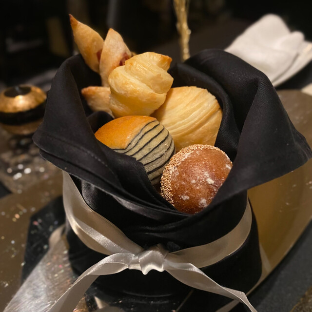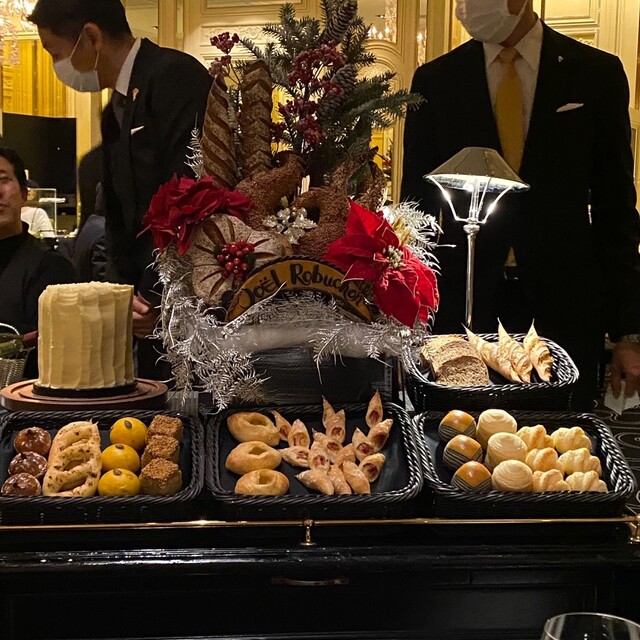 はじめにワゴンのパンをいただきますが、お店のなかにあるベーカリーで焼いたものを出しています! ロブションのパンは美味しくて本当に大好きなので、自分の好きなものを選んでいただける空間が幸せすぎました〜 後のデザートワゴンが食べれなくなるので、パンは控えめにしました