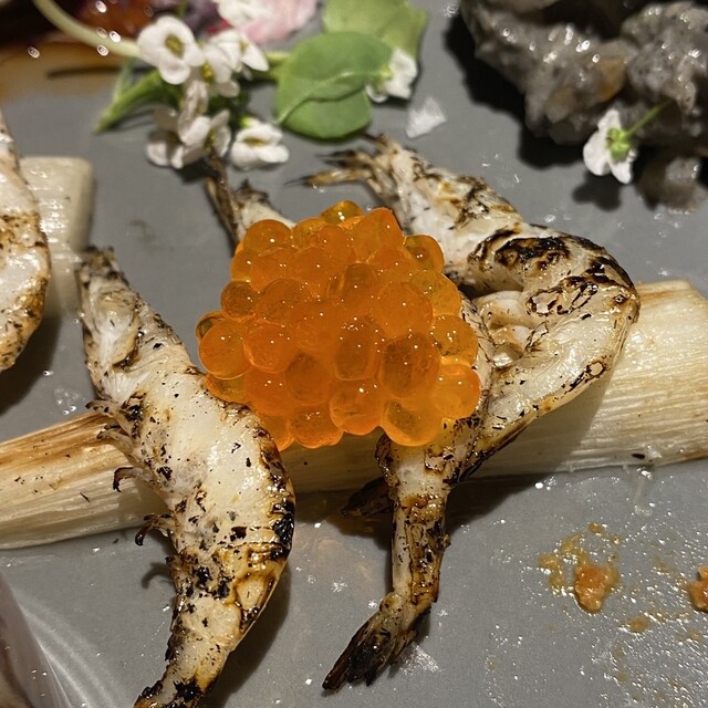 特に印象に残っているのは、ホワイトアスパラと白海老です!こちらは、やわからなホワイトアスパラと旬の白海老がマッチ白エビは少し香ばしく炙っているので甘みとほのかな苦みが絶妙なのです☺️フレンチキャビアはピンク色でいくらみたい…でも味わいはキャビアで塩気がアクセントになります!