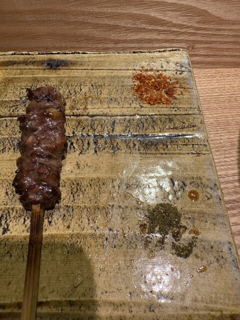 ソリ。もも肉の付け根の部分。七味唐辛子で食べる。もも肉より少しだけ食感が強く、もちもち感もあり、塩味と合わさって美味しい。