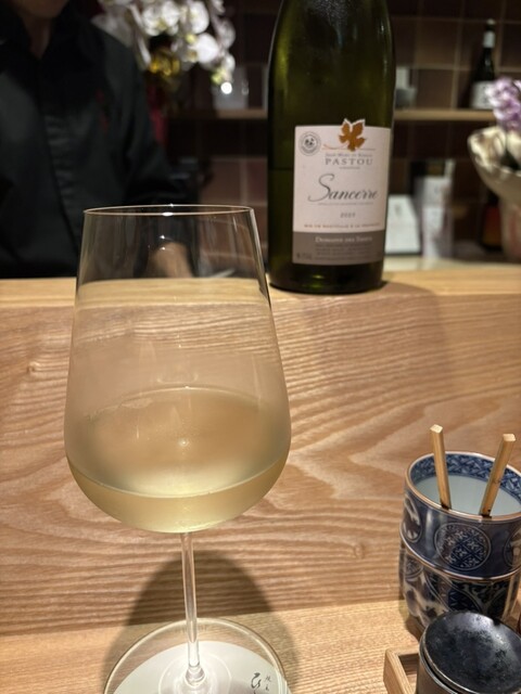 焼鳥に合わせて白ワイン。フレッシュで鶏肉によく合うタイプ。