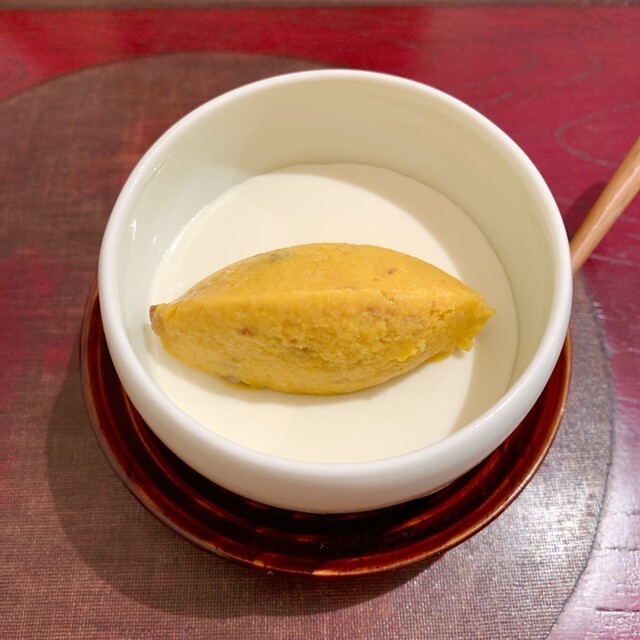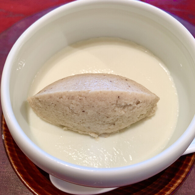 (菊芋チップス、麩、餅、カリフラワークリーム仕立て)