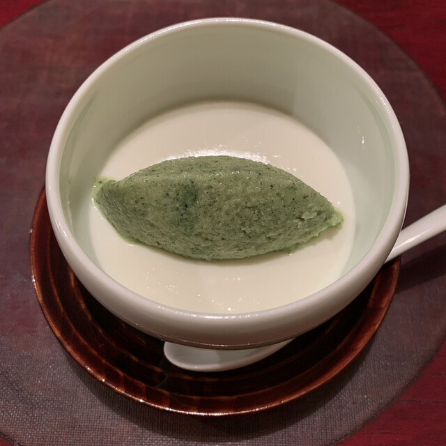 ・デザート(ほうじ茶ムースと干し椎茸アイス)