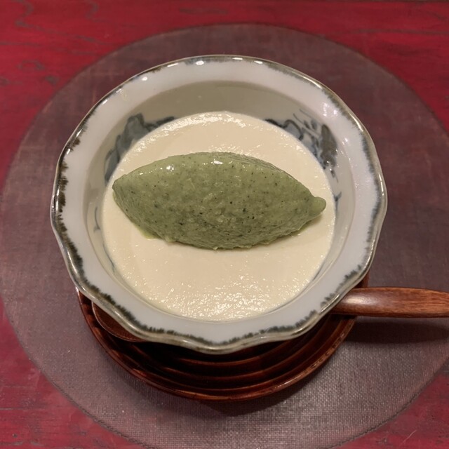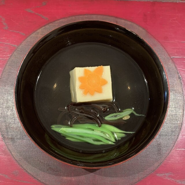 ・生海苔玉子豆腐、ゆりね、菜の花、絹さや、金時人参