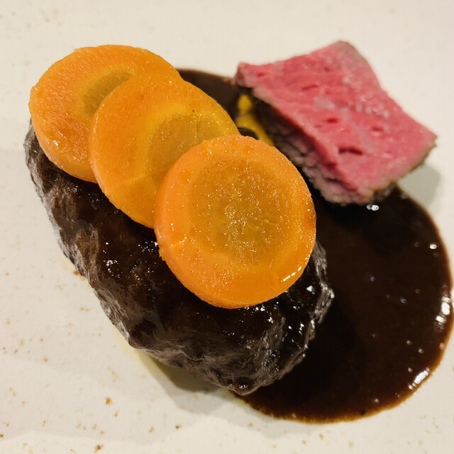 柔らかハンバーグ仕立てとトモサンカクの藁焼き