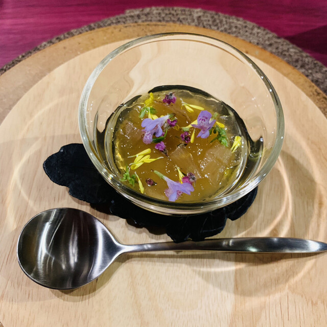 2品目は愛知鴨と新玉ねぎのジュレ仕立て