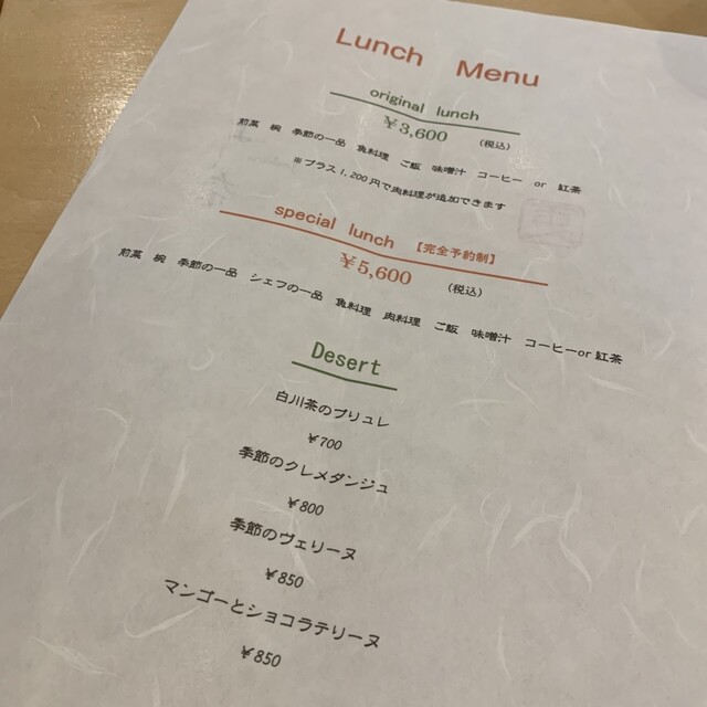 シェフとパティシエの奥様が手掛ける料理は、伝統的な和食の技術を基盤にしながらも、革新的なアイデアを取り入れています。