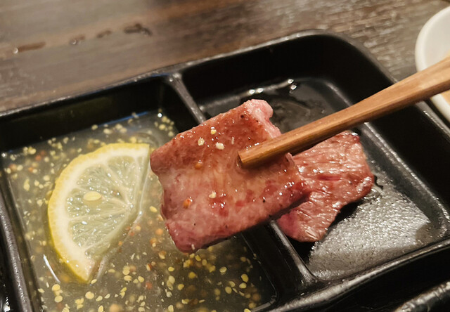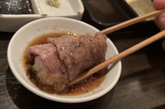 お肉のラストは大根おろしに特製ダレを黄金比のサシが入った
