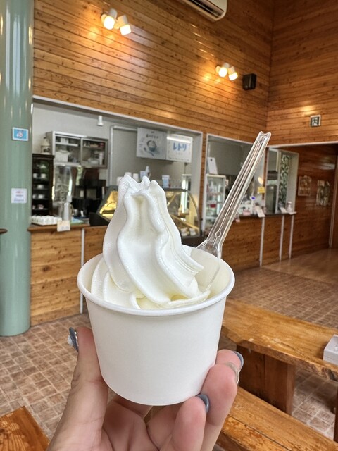 ソフトクリームでなく、生クリームアイスと例えたくなる位濃厚で牛乳の甘みたっぷりのソフトクリーム。