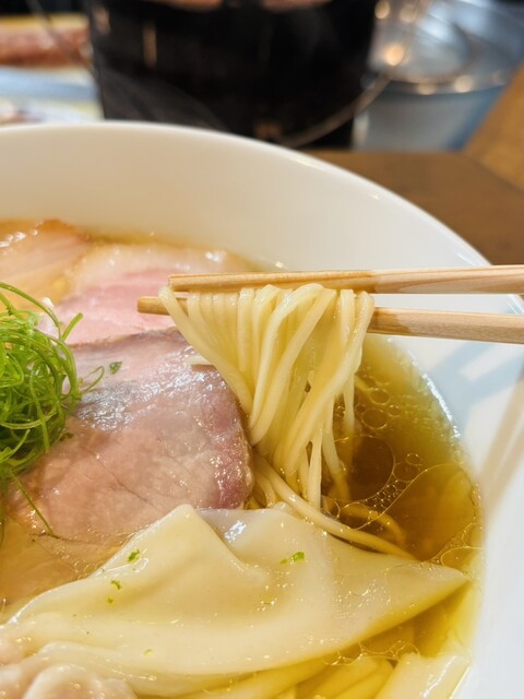綺麗な麺線と良い香りが漂うラーメンを見て、思わず笑みがこぼれました。まずはスープから一口…優しさの中に凄く深みがあり、めっちゃ美味しかったです。お次は麺をリフトアップし、すすってみると…口当たりが凄くなめらかで、スープとの一体感があり、めっちゃうめー。チャーシューは黒豚ちゃーしゅー4枚、地鶏柚子胡椒焼きの2種類で、凄く肉肉しく、黒豚チャーシューの脂身が凄く美味しかったです。地鶏チャーシューは凄く肉厚で、噛めば噛むほど柚子胡椒と肉の旨みが口いっぱいに広がりましたね。黒豚わんたん2個も肉肉しく、わんたんの皮もチュルっと美味しく頂きました。メンマはコリコリ食感が凄く良く、少し出汁を効かせた感じが堪らなかったです。デザート感覚で味玉をパクリと食らって、最後は柚子の味わいと香りを感じながら大満足で完飲完食です。白醤油にしたことで、麺、具材がより引き立ってましたね。