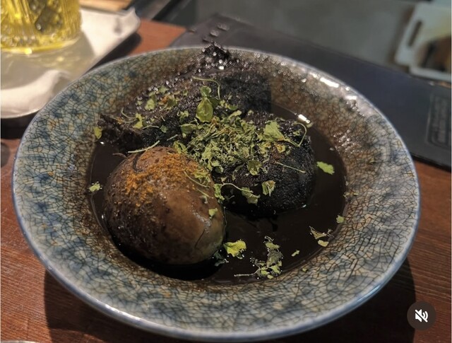 この真っ黒のおでんも気になって注文したけど、優しくて甘い味わい、