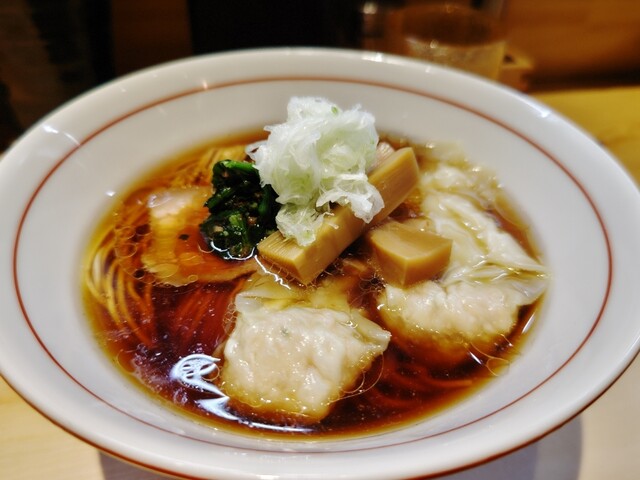 今日はワンタン入中華そば。無化調のコクのあるスープと平打ち麺がよく絡んで最高の一杯。ジャズが流れる落ち着いた店内もお気に入りです。