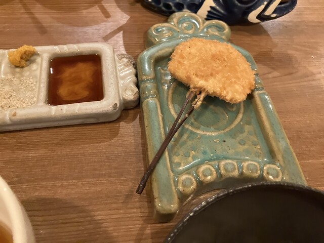 最近少し太ったので、8本のべに串を注文しました。キャベツ、ご飯、お漬物、お味噌汁が配膳されてから、すぐに串揚げが提供されました。ネギと豚フィレ肉、うずらの卵、ブロッコリー、玉ねぎ、こんにゃく、高野豆腐、チキン南蛮、さつまいも(バター味)。揚げたてサクサクで本当に美味しい♪すべてが気に入りました。
