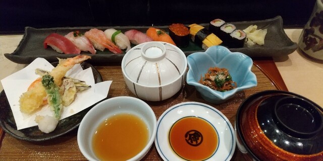 握り8貫巻き3貫に天ぷら、茶碗蒸し、小鉢が付いて2750円