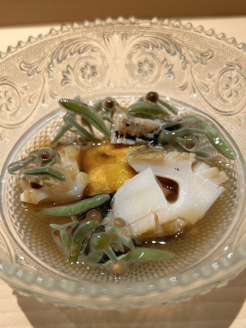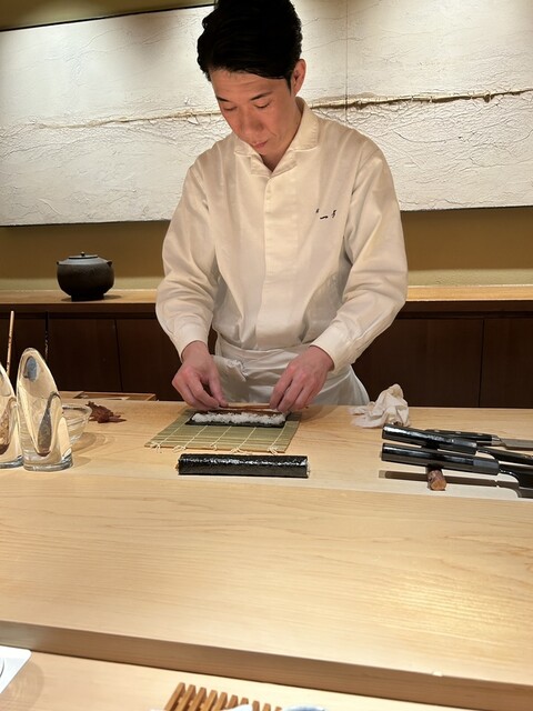 およそ半年ぶりの訪問。今回の目的は2つ。1つは工藤大将のお鮨を味わうこと。冬のスペシャリティの白子キャビアは今回初。もう1つは銀座移転についてのお話を伺うこと。人伝には色々と聞いていたものの、実際お話をお伺いしたら霧が晴れるようにクリアになった。鮨一幸さんの素晴らしさは、洗練した中にも昔ながらの町寿司の部分も継承している所だと勝手に思っていたが、今回の銀座移転はそれを更に進化させたものになるようだ。これはもう楽しみでしかない。今回も最高に美味しくて楽しかった。工藤さんは、情熱大陸や著書でも語られてるように、ご自身のお鮨のこだわりについて、食事中も色々と教えて頂ける。そのお話を伺いながらお鮨を頂くと、まさに工藤さんのお鮨は科学であり、アートであり、文学であるというのを実感する。知らず知らずのうちにストーリーを感じさせる場所は他にはない。まさに唯一無二。そして最後には嬉しいサプライスも。銀座も次回も大いに楽しみです。ありがとうございました。