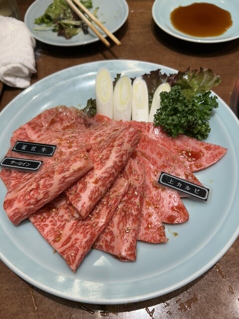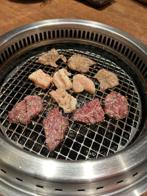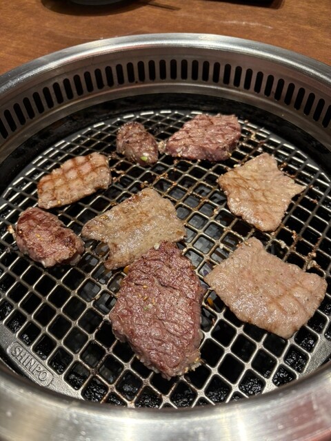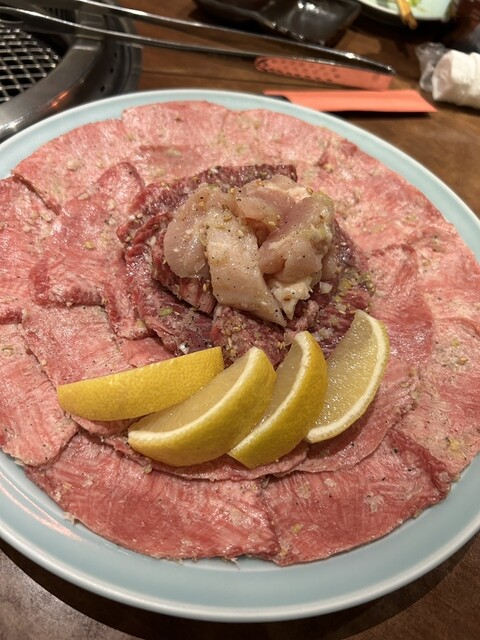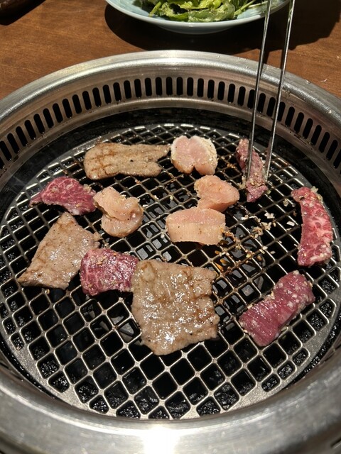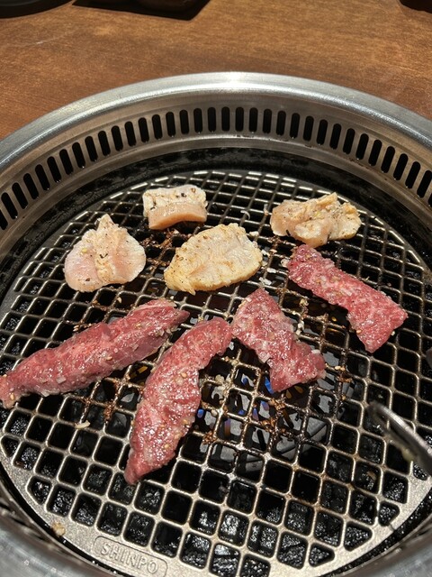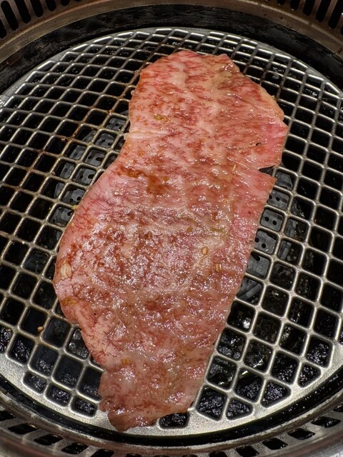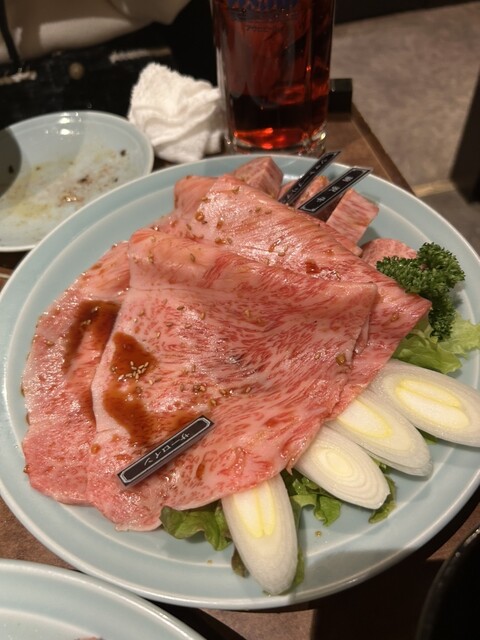 いつものように、まずは大好きな上タンからスタート。この店のタンは本当に絶品で、何度食べても感動が止まりません。続いては**上ミノ、上ハラミ、サーロイン、そしてシャトーブリアン(おまかせで上ロース)**と、どれも一切れ一切れ、肉の旨味が凝縮されていて、食べるたびに唸ってしまいます。特にシャトーブリアンは口の中でとろけ、まさに至福の瞬間でした。