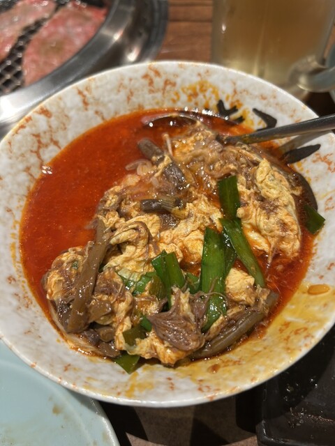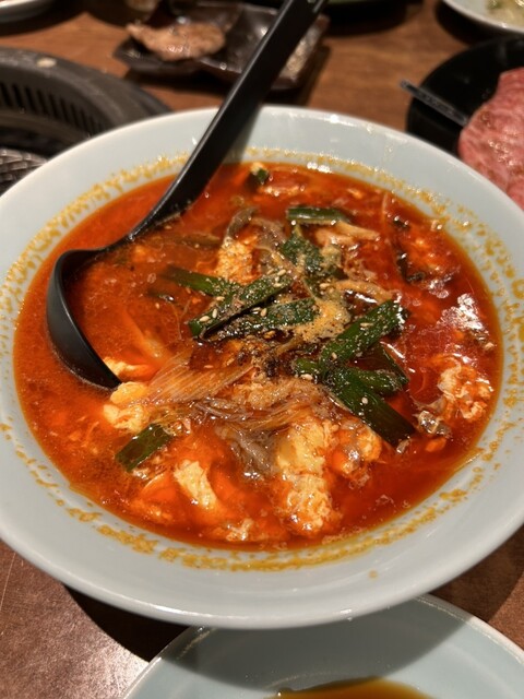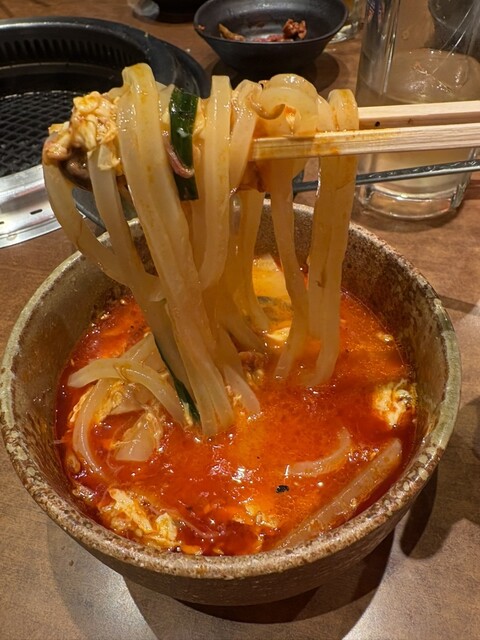 〆に頼んだテグタンうどんは、今回も期待を裏切らない美味しさ。つるつるの麺に、コクがありながらも深みのあるスープが絡んで、まさに癖になる味。焼肉店のサイドメニューのレベルをはるかに超える逸品です。