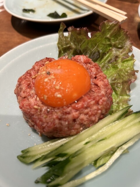 今回初めて試したせんまい刺も大正解!臭みが一切なく、新鮮でコリコリとした食感がたまりません。定番メニューに加えて、新しい発見があるのもこのお店の大きな魅力ですね。もちろん、定番のユッケも外せません。そのとろけるような口どけに、今回も舌鼓を打ちました。