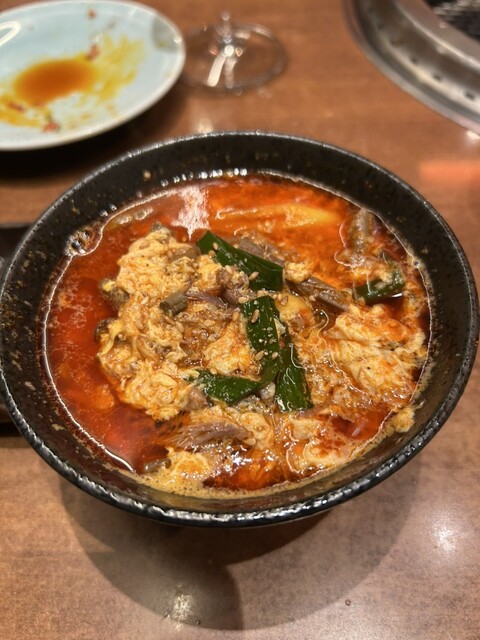 〆は、焼肉店のサイドメニューのレベルをはるかに超える名物、テグタンうどん。そのコクと辛さが、口の中をリセットしてくれます。最後は食後のプリンで完璧に締め。