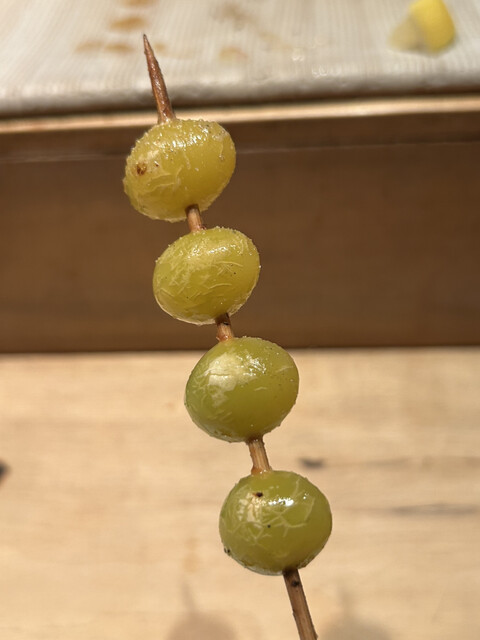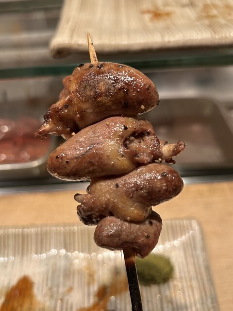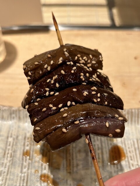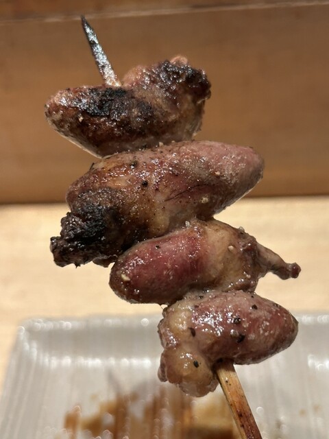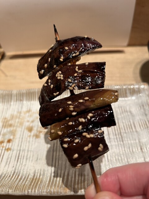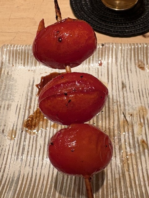 後半も、プリプリのハツ、ジューシーなせせり、甘みが際立つミニトマト、パリッと香ばしい手羽先と、次々に完璧な火入れの串が続きます。ねっとりとした甘さの紅はるか、とろけるようなナス、濃厚なレバー、肉厚な椎茸、みずみずしいズッキーニ、そして締めくくりの手羽皮まで、最後まで一切の妥協がありません。