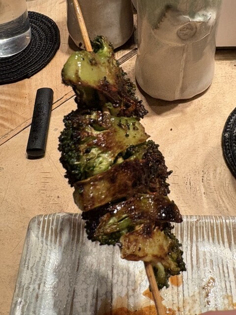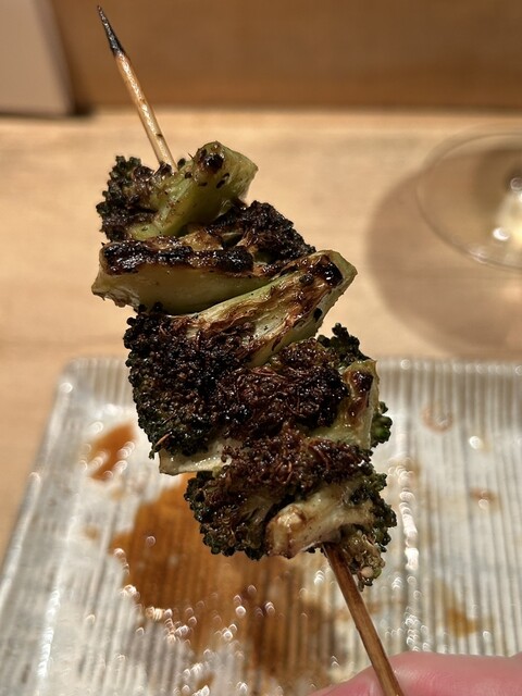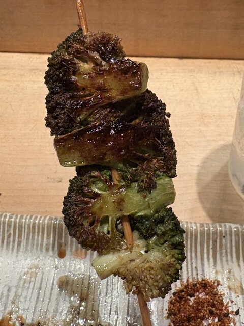 この日も、定番のかしわから始まり、独特の食感がたまらない薬研軟骨、とろけるようなうずらの卵、そして珍しい食道まで、一口ごとに感動が押し寄せます。野菜串も素材の良さが際立ち、シャキシャキの蓮根、みずみずしいインゲン、熱々のブロッコリーと、どれも旨みが凝縮されていて絶品でした。