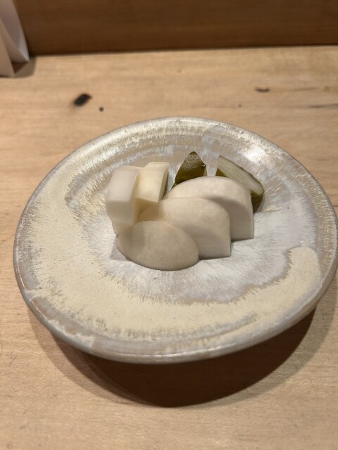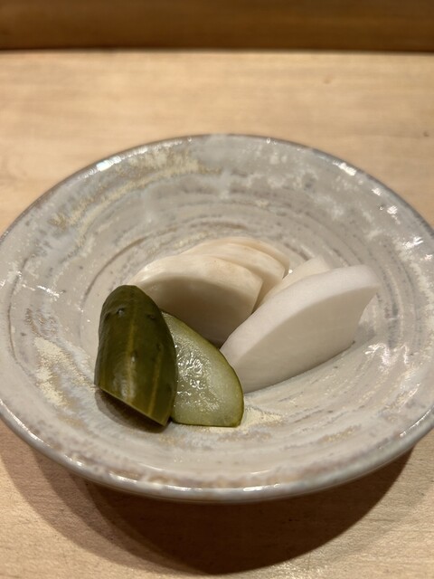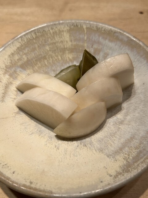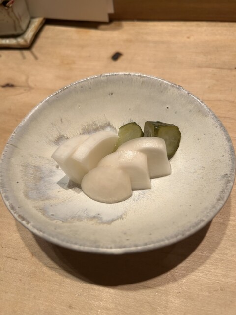 まず、箸休めに嬉しい漬物。そして、遊び心溢れる6つの部位をのせたバケットからコースがスタート。定番のかしわ、コリコリとした食感がたまらない砂肝、パリッと香ばしい皮。野菜串も充実しており、みずみずしいズッキーニ、独特の歯ごたえが楽しい薬研軟骨、とろけるうずらの卵と続きます。途中で供される優しい味わいの煮麺は、口の中をリセットし、次の串への期待を高めます。