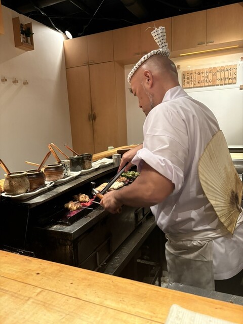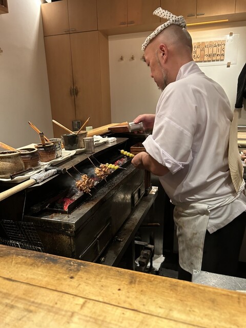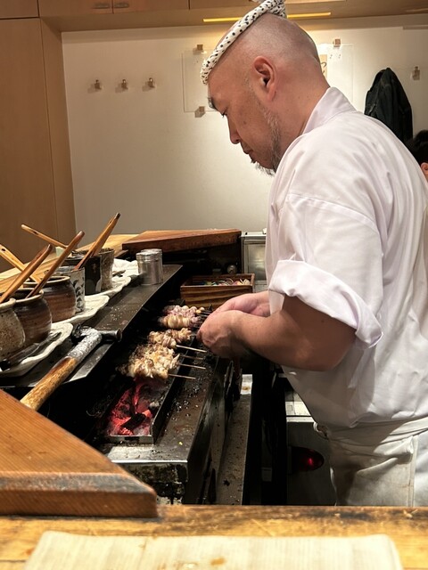 絶妙な焼き加減で頂く焼き鳥。池川親方の背中で生き様と焼き鳥への愛情を感じられるお店
