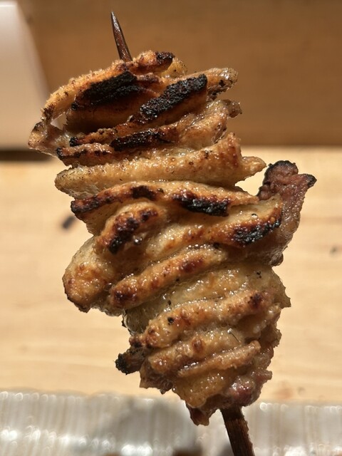 今回は久しぶりに膝をいただきたかったので、序盤にリクエスト。健全に育った鶏の肉感がたっぷりの膝は、食べ応えも味も素晴らしかったです。いつもは終盤に提供されるため、なかなか辿り着けない希少な一串を堪能できました。終盤はいつものように、その日の気分で食べたいものをリクエスト。本日も至高の19本を心ゆくまでいただきました。ご馳走様でした。
