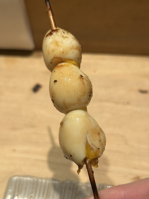 若干肌寒さも感じる季節になり、熱々の焼き鳥が益々美味しくなってきます。同行者の方がマグマのように熱いと表現していたナスやしいたけは、この季節ならではの最高の味わいでした。最近では膝も定番の楽しみとなり、前半にお願いして出していただくと、その肉感たっぷりの旨みがしっかりと味わえます。