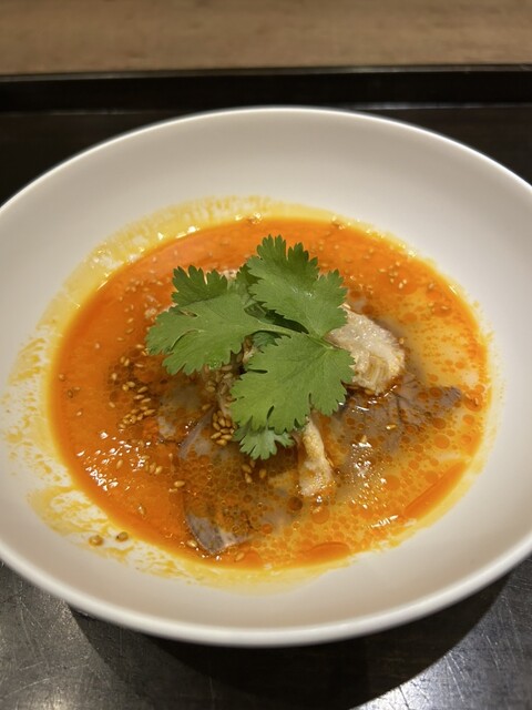 東京は既に満開を迎えたが、関西はまだ桜が咲き始めだという。東京より関西が桜の開花が遅いとは知らなかった。定期訪問。本日は初めて頂くメニューが多かった。鮪とクラゲとカラスミのカルパッチョ、雲白肉の肉が穴子になったもの、タンとスネの四川風の夫婦肺片?、そしてなんと言っても今回は念願の焼豚麺を頂けたのが嬉しかった。色んなラーメンを食べ歩いたが、これは文句なしに旨過ぎた。スープは焼豚の旨味も溶け込んで芳醇な旨味を感じる。斎藤製麺の細めの麺もバッチリ合う。焼豚も旨い。メンマも自然な甘味の優しい味。これだけでも食べに来たい。笑 今回もありがとうございました。ご馳走様でした。
