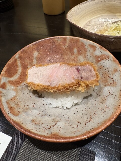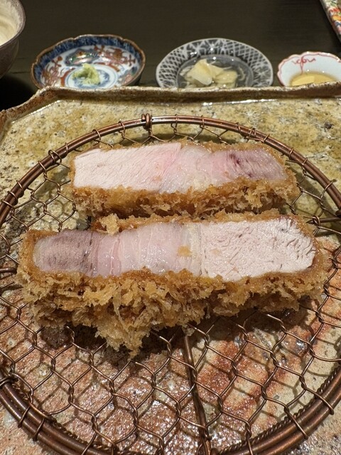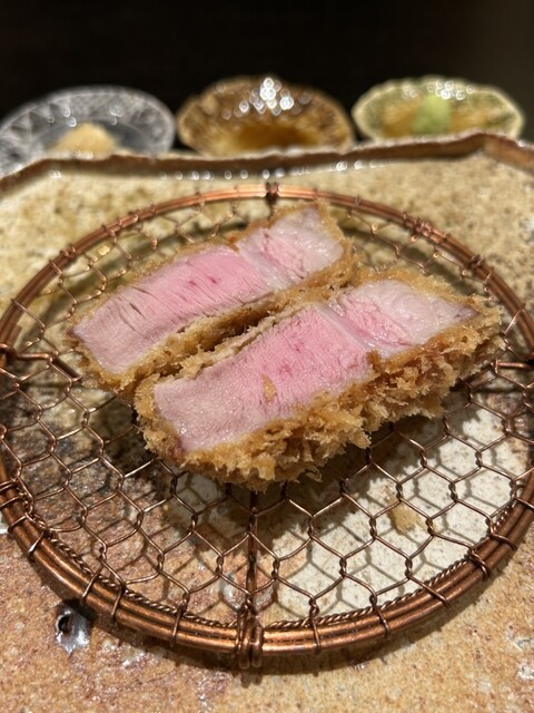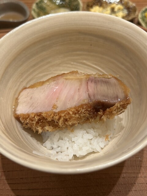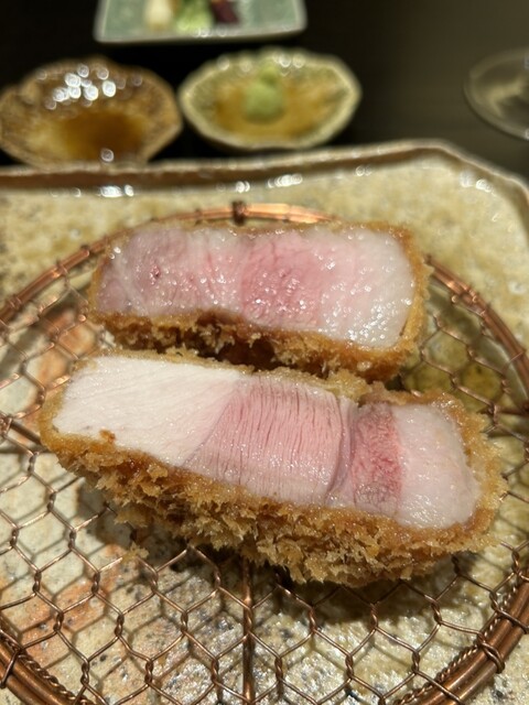2度目の訪問になりました。店主のちゅんしんさんのSNSにゲリラ的にお席が出るお昼のコース。今のところ毎月定期的に開催されています。ちゅんしんさんとお会いするのは3度目。初対面は、某お鮨屋のカウンターでした。笑 本日は1品目から季節のものということで素晴らしい松茸が。ホスピタリティが素晴らしいです。2度目ということでペース配分や食べ方もわかっていたので前回より楽しめました。ここ以上のカツは食べたことがありません。日本一すなわち世界一だと思っています。内装や装飾も素晴らしい。夜の肉しゃぶコースも素晴らしいこと間違いないと思うので、またお伺いさせて頂きたいと思います。ご馳走様でした。