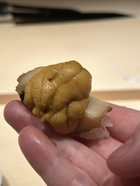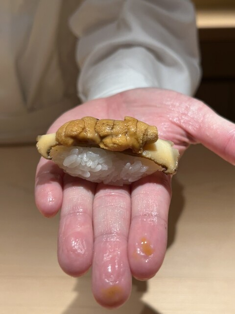 さらに、鮑雲丹もテンションが上がる嬉しい一品。今回は贅沢にも、つまみと握りで計3種類の雲丹をいただくことができ、その多様な味わいを存分に堪能しました。