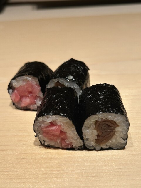 握りも夏の魅力が満載です。夏の鮪も、一幸さんの特徴である白いシャリにぴったりと合い、爽やかながらも奥深い甘みと豊かな余韻が残ります。工藤大将がよく表現される「味が伸びる」という感覚をまさに体感できます。コース全体を通して、一つの味が次の味へと繋がり、変化していく様は、コースとしての余韻の素晴らしさを際立たせていました。