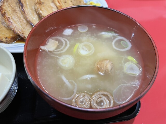 初めて食べた焼き豚は甘辛ダレで味付けされていて和がらしを付けて食べたら絶品でした。後からおろしニンニクで味変したら美味しいご飯が尚更美味しく感じます♪