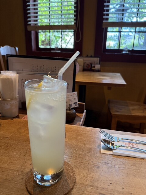ドリンクのエルダーフラワーソーダはマスカット風味のシロップとソーダ感でサッパリした口当たりです。