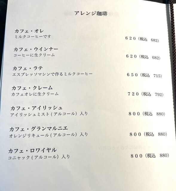アレンジコーヒーメニュー表