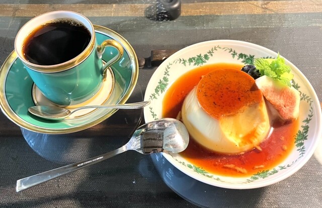 硬めのプリンとブレンドコーヒー最高です!
