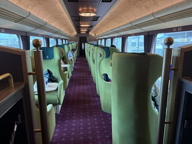 また、席からは京都を出発して間も無く右手に東寺、奈良に着く前に左手に朱雀門が見えます。
