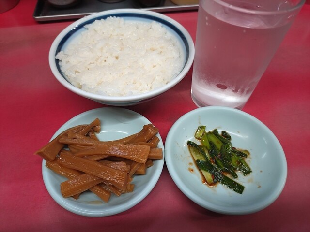 ライスにたくわん付いて無いしニラ薬味も小皿100円と有料