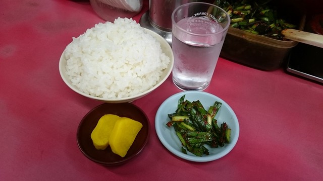 ライス(小)100円とニラ薬味をスタンバイ!!