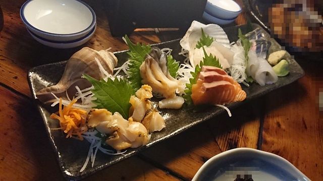 左からツブ貝・北寄貝・サーモン・帆立貝・イカ・鯖