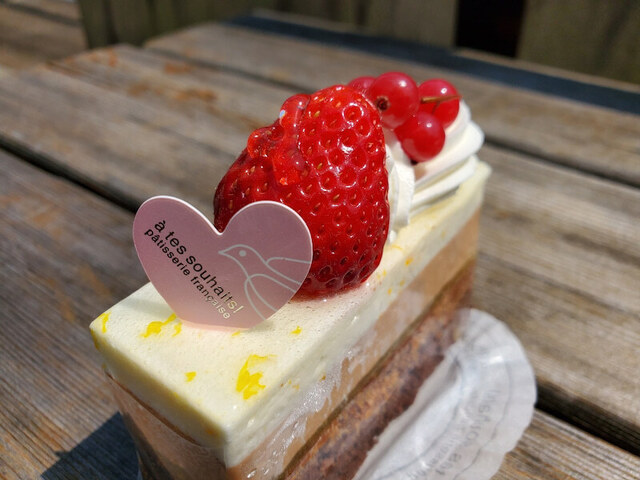 ケーキの上にはイチゴとレッドカラントが