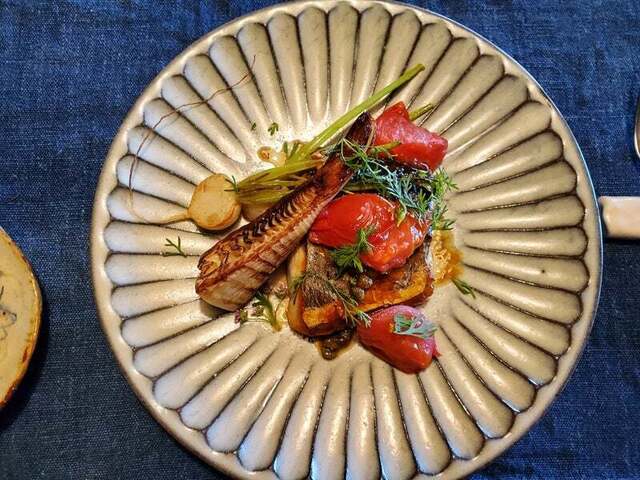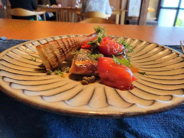 野菜は小カブ、タケノコ、トマト、パクチー。